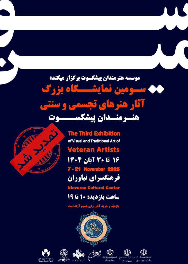 به گزارش روابط عمومی موسسه هنرمندان پیشکسوت ، با توجه به استقبال مخاطبان از سومین نمایشگاه بزرگ آثار هنرهای تجسمی و سنتی هنرمندان پیشکسوت ، این نمایشگاه تا روز جمعه 7 آذرماه تمدید شد.